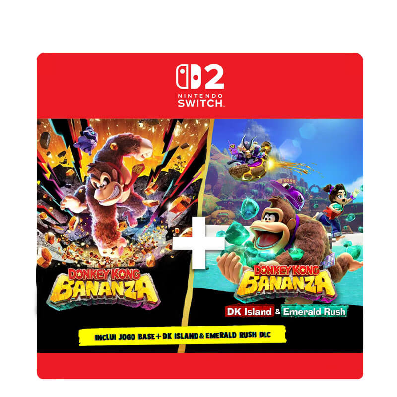 Viva a aventura subterrânea completa com o Donkey Kong Bananza Bundle no Nintendo Switch 2! Este pacote especial inclui o jogo base completo, onde você acompanha Donkey Kong e Pauline em uma jornada cheia de ação rumo ao Núcleo do Planeta. Destrua, golpeie e abra caminho por um gigantesco mundo subterrâneo usando as inéditas Transformações Bananza para derrotar o temível Void Kong. Além da campanha principal, o bundle também traz a expansão “DK Island & Emerald Rush”, que adiciona um novo mundo nostálgico e um modo de desafio extremo para testar suas habilidades.