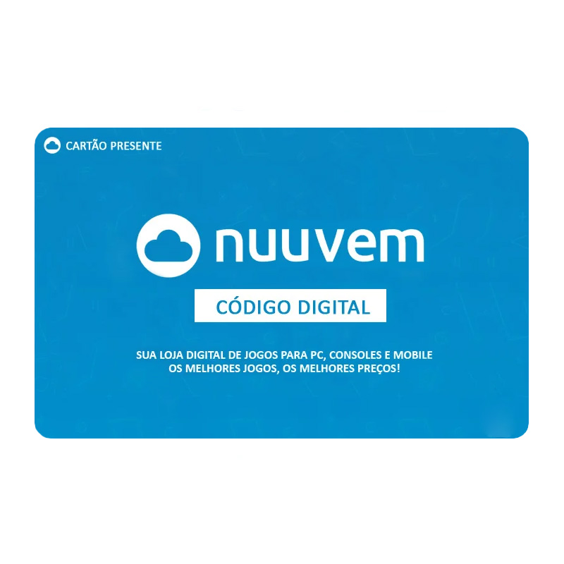 Com o Nuuvem - Cartão Presente Digital, os gamers podem adquirir crédito para compras na Nuuvem.com; compre para você, ou como presente, e receba na mesma hora! O Cartão Presente Digital pode ser usado para comprar jogos, assinaturas e créditos para seu Pc, Nintendo Switch, PlayStation, Xbox, Android e IOS, sendo cumulativo com os