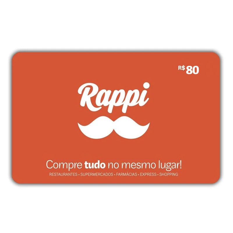 Ideal para presentear alguém especial ou para controlar seus próprios gastos, o cartão pré-pago Rappi garante liberdade, comodidade e segurança nas compras online. Basta resgatar o código no aplicativo e o saldo estará disponível imediatamente para uso. Confira também as opções de gift card Gift Card Rappi 25 reais e Gift Card Rappi 50 reaisGift Card Rappi 80 reaisGift Card Rappi 100 reaisGift Card Rappi 150 reais e Gift Card Rappi 200 reais