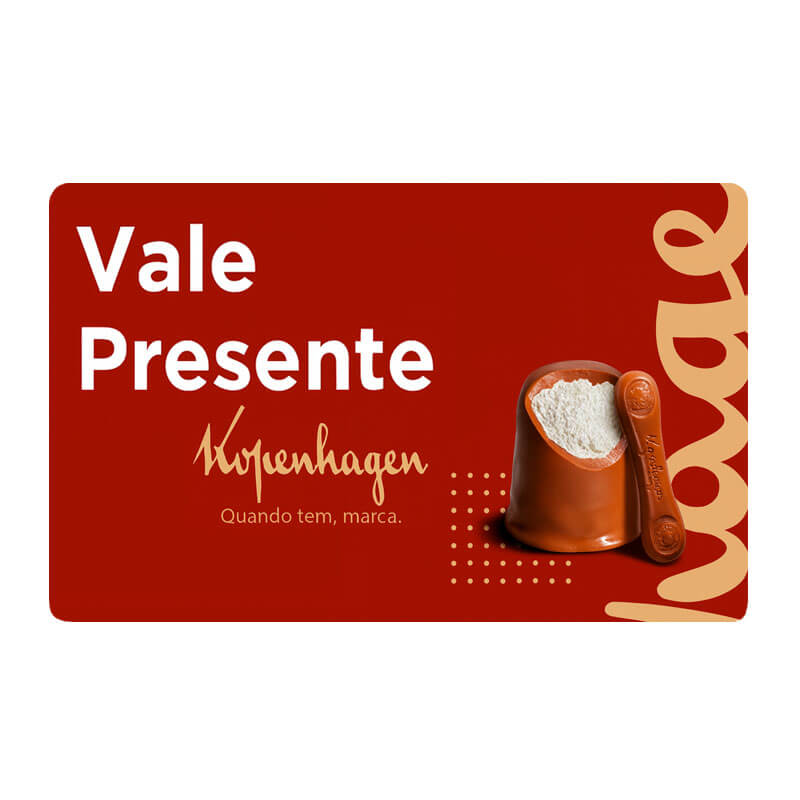 Há décadas, a Kopenhagen é sinônimo de tradição e qualidade, produzindo chocolates que preservam sabores autênticos, aliados à originalidade e sofisticação. Cada criação é feita com ingredientes cuidadosamente selecionados, garantindo experiências únicas a cada mordida. Com o Vale Presente Kopenhagen, você oferece a quem ama muito mais que um presente: proporciona uma deliciosa experiência repleta de sabor e encanto.. Aproveite e confira também as opções de Vale Presente Kopenhagen de 50 reais, 100 reais e 200 reais.